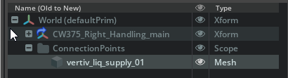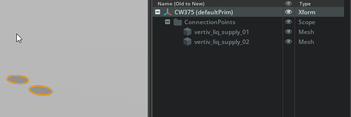 <AssetName>_ConnectionPoints.usd(for example,CW375_ConnectionPoints.usd).Reload the main geometry file. In the Layers panel, drag and drop the connection points file as a sublayer.