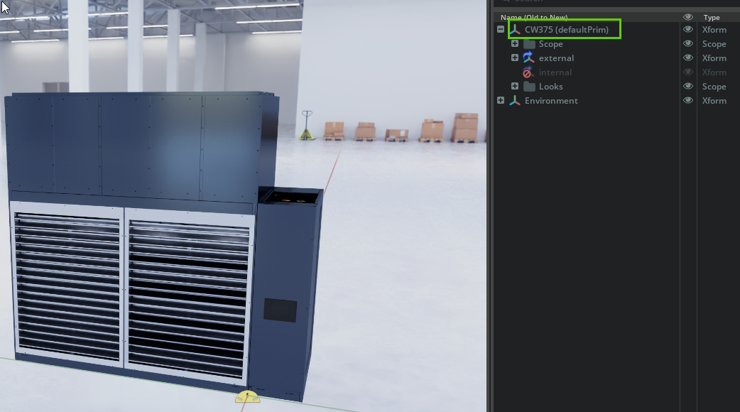 Open your main geometry file in USD Composer. Note the defaultPrim name (you will need it later).